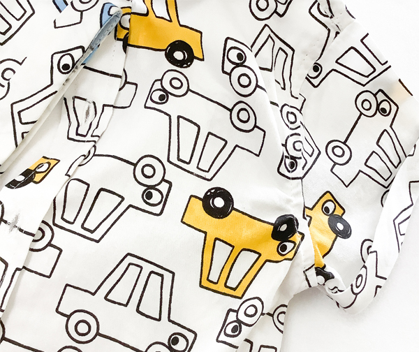 – คอปก แขนสั้น – กระดุมหน้า – ผ้าสีพื้นกรมพิมพ์ลายอวกาศ – ผ้าcotton วูเว่น 100% ผ้าไม่ยืด ไม่กระด้าง